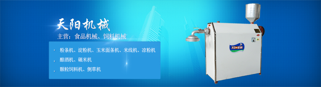 曲阜市天陽機械制造有限公司坐落于“東方圣城”——孔子故里曲阜市,是一家從事糧食食品加工機械,飼料機械的企業。公司秉承“顧客至上,銳意進取”的經營理念,堅持以客戶為中心的原則為廣大客戶提供優良的服務,主要產品有粉條機、淀粉機、玉米面條機、米線機、涼粉機、釀酒機、碾米機、顆粒飼料機、側草機等,歡迎回顧!公司全體員工將竭誠為您服務。